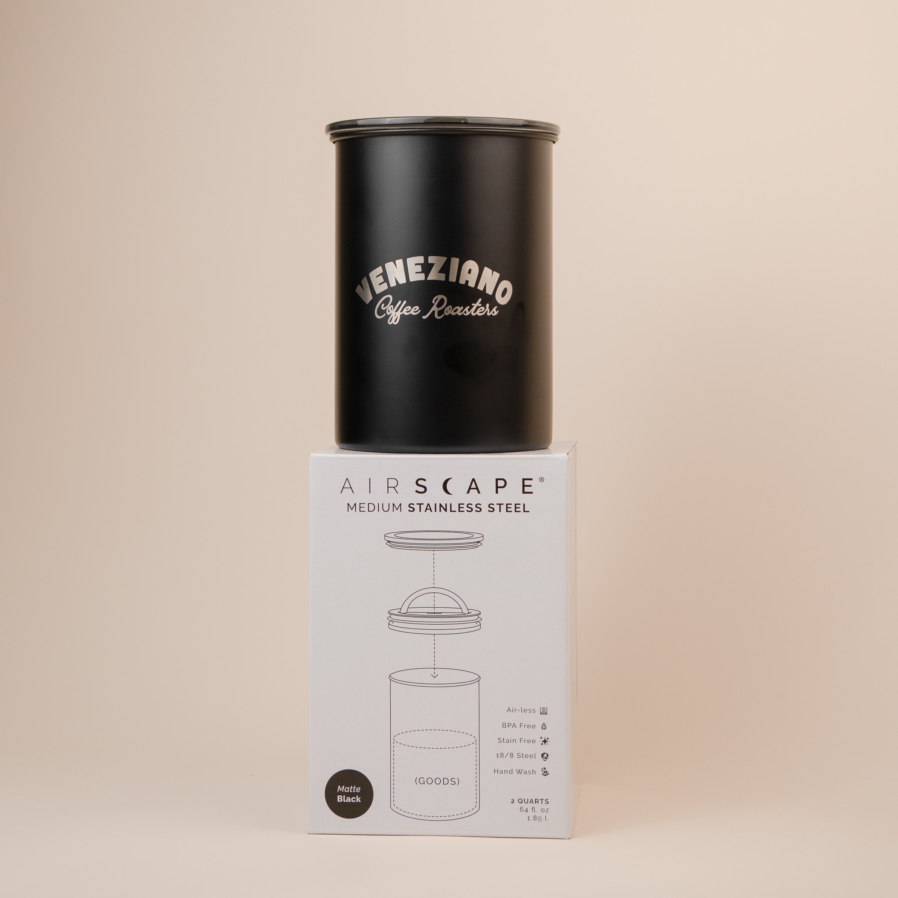 If you're serious about coffee, you know that keeping your coffee beans fresh is essential to achieving the best flavour and aroma. That's where a high-quality coffee canister comes in. We offer the MiiR Coffee Canister, which is designed to keep your coffee beans fresh for longer by protecting them from air, moisture, and light. It is made from high-grade stainless steel with an accordion-style seal that compresses to remove the oxygen and locks in the flavour. Each canister is etched with the iconic Veneziano wings logo.