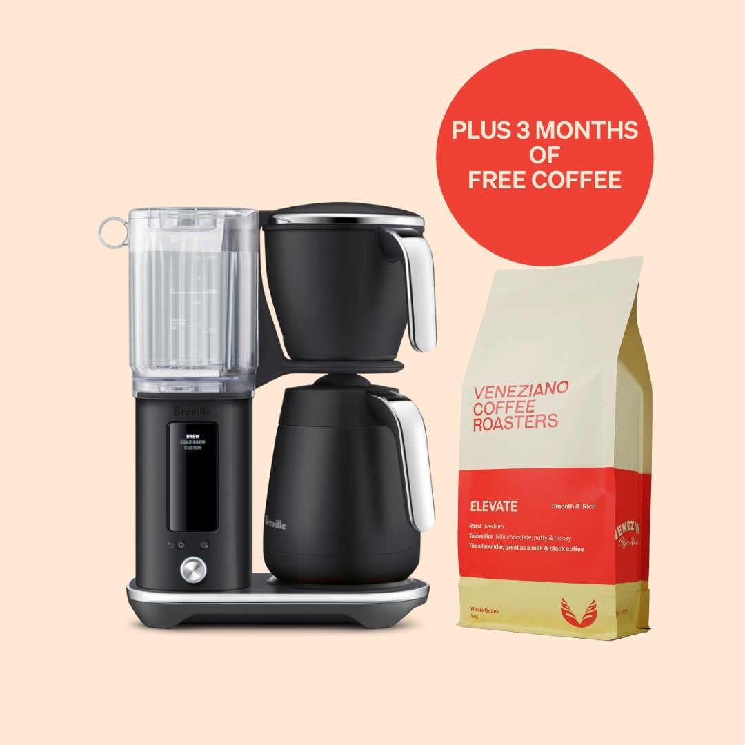Enjoy the ability to brew your coffee to Veneziano specialty coffee standards. The personalised one-touch brew profile will automatically remember your settings for next time. Fine-tune bloom volume, bloom time, brew temperature and flow rate to create the perfect coffee for every taste.