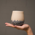 Audrey has incorporated the use of Gosu, a traditional Japanese blue pigment which adds individuality to each cup. The brushstrokes introduce subtle variations. Every cup is unique and has its own personality.